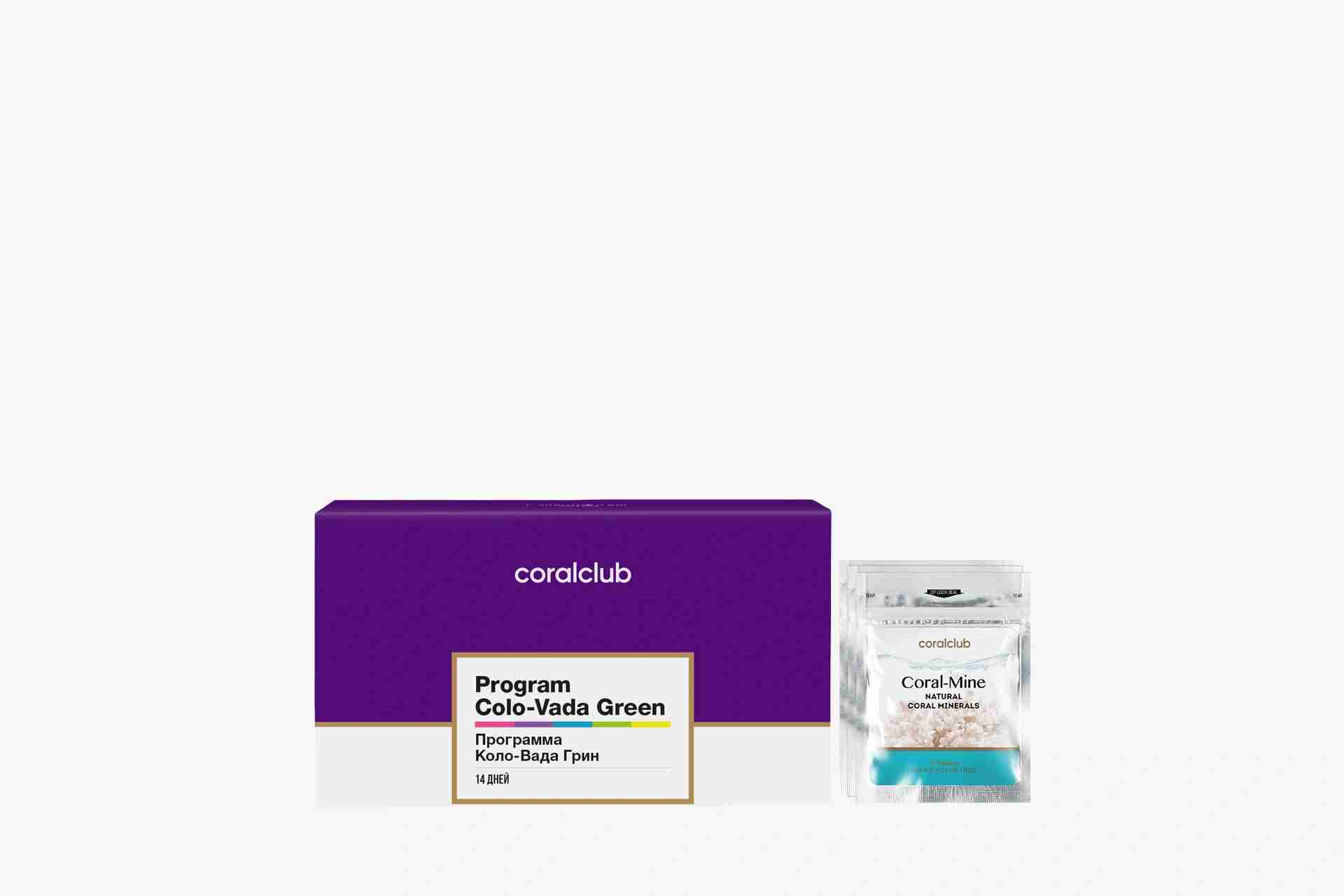 A Pack of the Colo-Vada Green program and the Coral-Mine mineral composition for the most effective cleansing of the body and metabolism optimization.